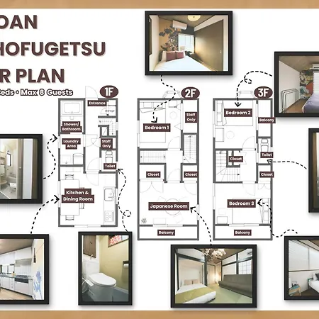 L'Appartamento Ukiyoan Kachofugetsu comprende un salottino con un impianto di climatizzazione per il massimo comfort. L'appartamento invita gli ospiti a soggiornare in 3 camere da letto. L’alloggio dispone di 2 bagni. Inoltre, troverete un bidet, un bagno con WC separato e una doccia.